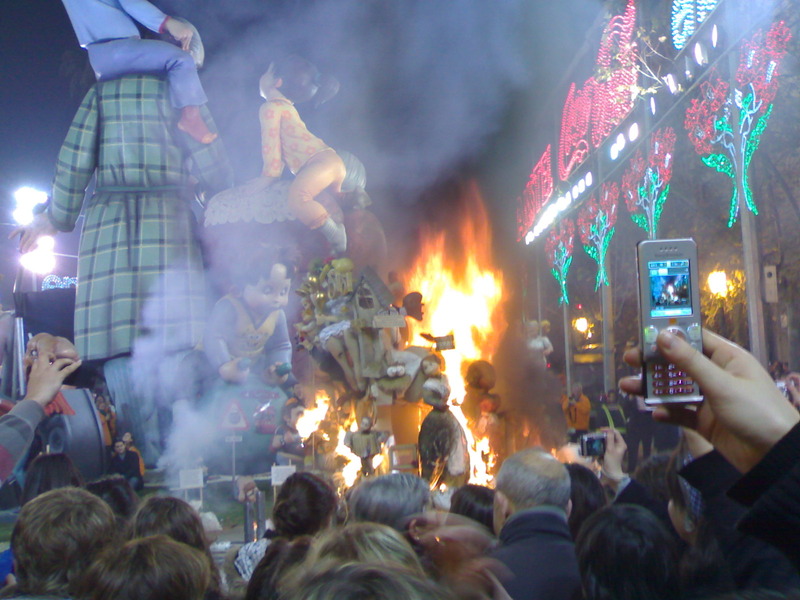 Vimos algunas cremás, (de nuevo impresionante lo rápido que se consumen las espectaculares obras de arte), hay que echarle huevos para quemar semejantes monumentos… Cenamos un kebab ya que no quedaba bar en Valencia con pan para bocadillos, nos sentamos en la plaza de la ofrenda a la Virgen y nos pusimos a recordar anécdotas, es increíble que después de tanto tiempo sigamos teniendo cosas que contar y con las que pasar tan buenos ratos.