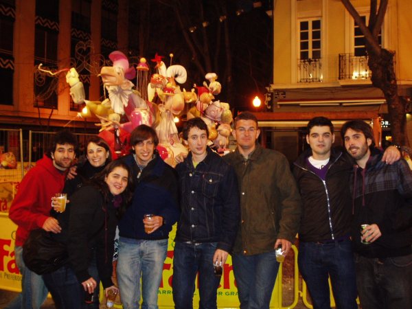 Acabamos de beber en una plaza de cuyo nombre no puedo acordarme, donde curiosamente el baño de tíos tenía una cola de 7 u 8 personas mientras que el de tías estaba vacío (me comentaba en la fila el tío que teńia delante que en Fallas hay muchas filas ganas de mear toda la cerveza ingerida), luego peregrinamos en busca de algún bar pero todos cerraban, bebimos cervezas que se vendían por la calle, varios del grupo nos perdimos varias veces (¡benditos móviles!) y al final terminamos en un bareto cuya música, creo recordar, era salsa y donde terminamos la noche hasta que a altas horas de la madrugada decidimos irnos a casa.