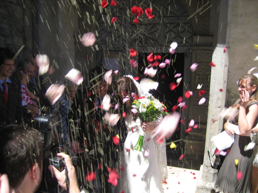 La ceremonia fue emotiva, y aunque mi intención era escaparme en cuanto pudiese y el sermón del cura incitaba a ello, los speech de los hermanos hicieron que la iglesia entera estallase en carcajadas. Una firma rápida de testigo y a la salida, pétalos y arroz para la pareja.