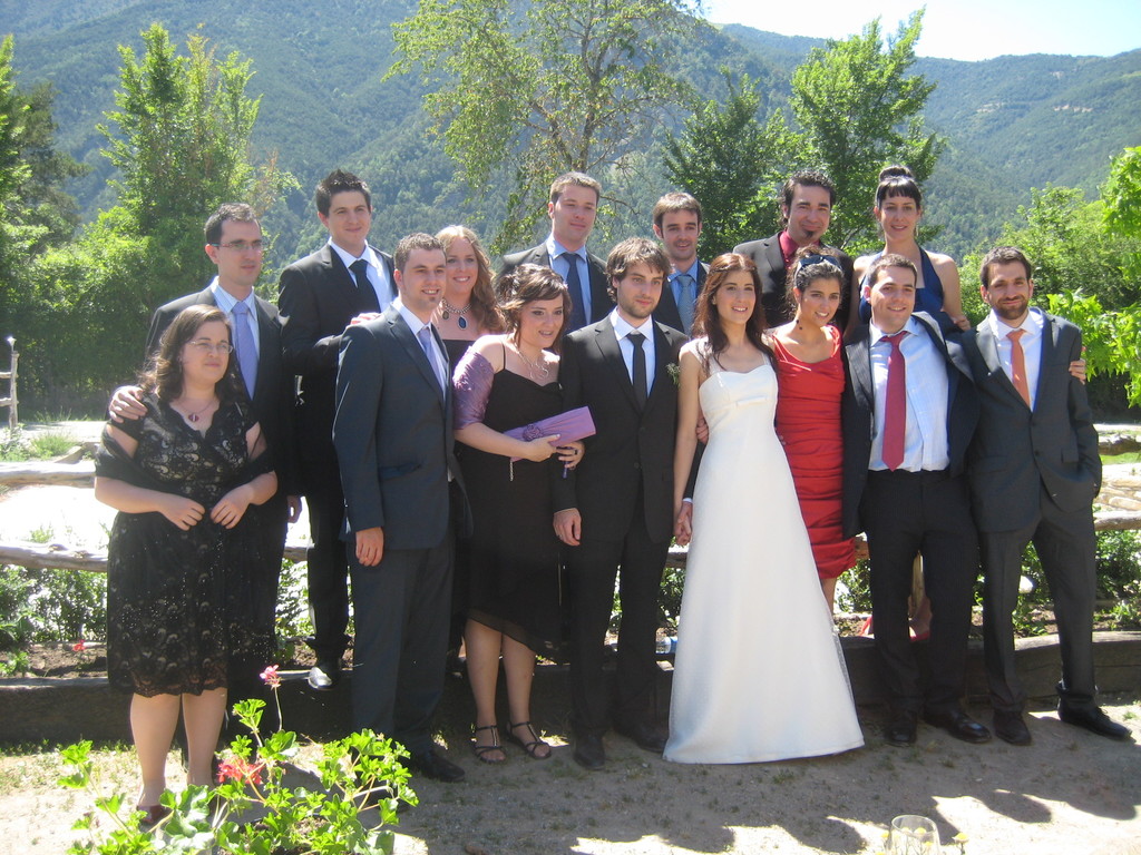 Como ya dije, era la primera boda del grupo de amigos, así que los nervios, las novatadas y las prisas estuvieron a la orden del día. Para empezar llegamos apurando al máximo y tuvimos que hacer rechinar las ruedas del coche por las carreteras pirinaicas, nos cambiamos en el hostal donde pasaríamos la noche y me di cuenta de que el traje me quedaba demasiado grande porque la percha ya no es igual que la de antes (aunque peor fue lo de aquel que se presentó sin zapatos), llegamos muy justitos a la ceremonia y agradecimos la tradición no escrita de que la novia llegue tarde.
