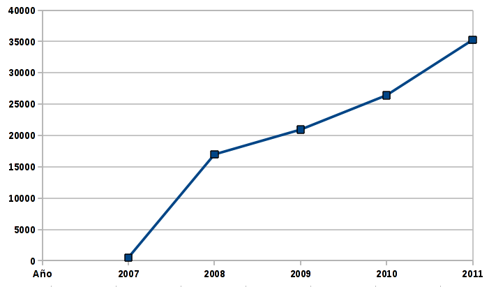 - Visitas por año Como es normal, a medida que voy generando contenidos (útiles o no), los buscadores se van haciendo eco de ello y poco a poco voy recibiendo más visitas: