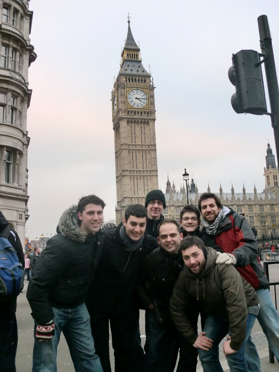 Al día siguiente, intentamos madrugar dentro de nuestras posibilidades para darnos un paseo por Londres. Yo ya había estado bastantes veces pero como había gente que todavía no conocía la ciudad estuvimos todo el día pateando. Vimos lo típico: British Museum, el Soho, Picadilly, Trafalgar, Big Ben, Buckingham… y de vez en cuando hacíamos paradita para reponer fuerzas con algo de comida y algo de bebida (aquí gozamos de la presencia de Londres que nos fue haciendo de guía). Estábamos bastante cansados pero no podíamos dejar pasar una noche como aquella así que tras volver al hostal y descansar un poco, fuimos a un bar por el Soho donde todos bebimos y algunos cenaron. Allí nos juntamos con la rezagada de Estocolmo y su amigo e intentamos ir a una Spanish Party que algunos conocían pero que al final hizo aguas, así que decidimos volver al bar donde habíamos empezado y donde terminaríamos la noche. La música era buena, el precio carísimo (como era de esperar por allí) y sobre las 3, decidieron que era buena idea cerrar el bar, y nosotros como pobres desamparados vagamos durante una hora en busca de algún lugar donde refugiarnos; al final, volvimos todos a casa.