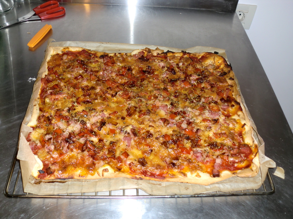 Aunque supongo que todo el mundo conoce lo que es una pizza, me lanzo a dar una definición de lo más amplia. Pizza: comida que consiste en una serie de ingredientes (entre ellos y por lo general, queso y tomate) sobre una masa de pan.