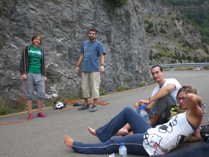 Como algunos sabéis soy aficionado a la escalada en interior búlder y siempre había querido iniciarme en la escalada en roca. Ya subí a medidados de verano a Escarilla (lo conté aquí) y me gustó mucho. Así, que el viernes repetí y subí con tres amigos (Sara, Bea y Kua) de nuevo a Escarrilla.