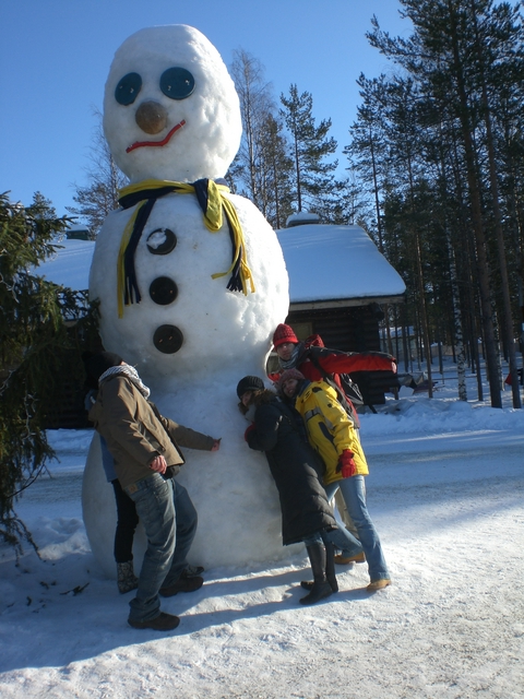 Sabado 15 Tras andar un ratillo por una estación con los andenes totalmente congelados, fuimos al edificio donde dejamos las mochilas/maletas en la consigna, como buenos jóvenes con poco dinero (y no diré españoles esta vez), nos colamos en el baño donde había que pagar 1€ para entrar, nos aseamos un poco y nos dimos unas vueltas por Rovaniemi. Hacía mucho frío y varios de nosotros decidimos que no habíamos venido con toda la ropa adecuada, así que entramos en un centro comercial y compramos cosas tipo calcetines, guantes, bufandas…