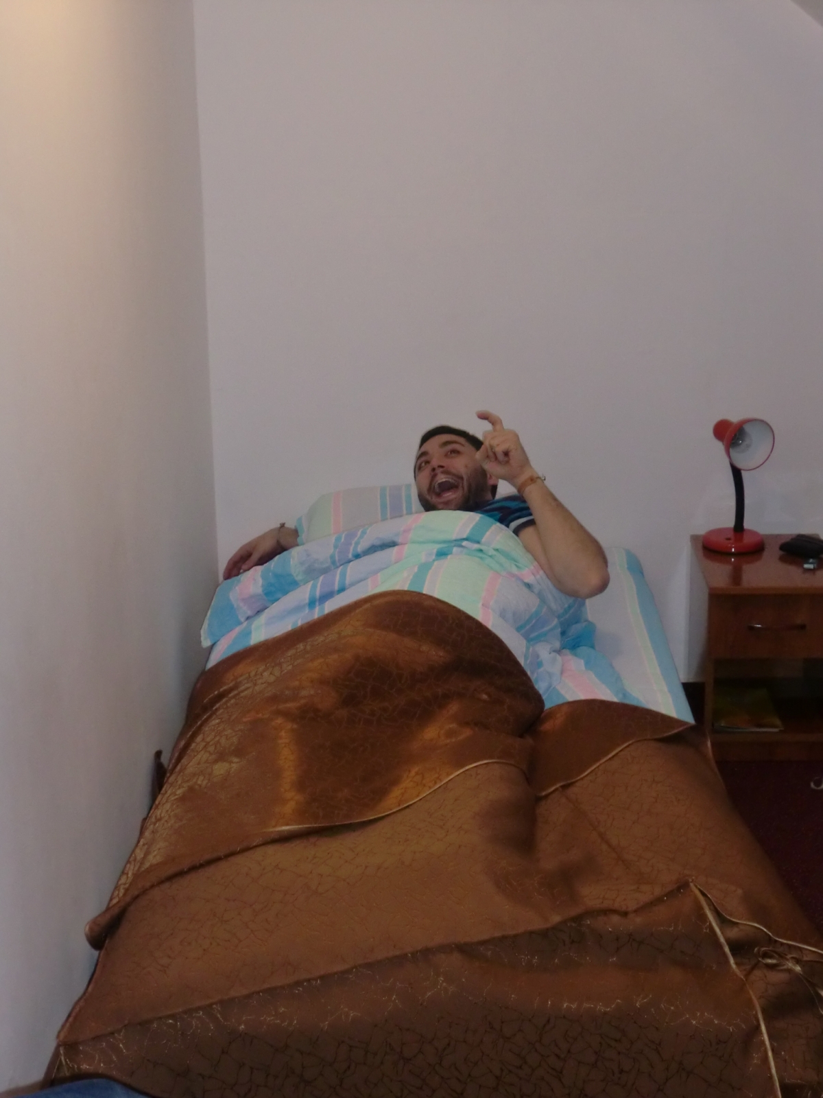 Comimos un bocadillo en un prado y luego pusimos rumbo al sitio donde dormiríamos, Piatra Neamt. Allí nos alojamos en un hotel exquisito por 10 euros cada uno pero nos dimos cuenta de que algo no iba bien, la ciudad estaba muerta, literal. Ni un sitio donde cenar, todo cerrado a excepción de un kebab y un “club” así que tuvimos que acabar cenando en un sitio de comida rápida y grasienta al lado de la estación y luego volvernos al hotel sustituyendo nuestra noche de fiesta por un té a la luz de la televisión… Y es que resultó que era el Sábado de Resurrección, y claro, otra cosa no, pero los rumanos son religiosos y aquí, es típico que a las 12 se reúnan alrededor de la iglesia, escuchen la misa y se dediquen a dar vueltas por el pueblo durante tres o cuatro horas… Supongo que, como comentamos, sería equivalente a intentar encontrar a alguien en España, una Nochebuena a las 11 de la noche….